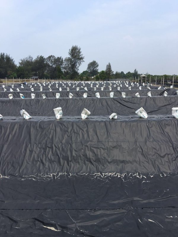 2.鋪設(shè)完土工布與防水毯保護(hù)墊層,即可鋪設(shè)HDPE防滲膜。準(zhǔn)備沙袋或廢舊輪胎等重物,將鋪設(shè)好的HDPE防滲膜壓實(shí),防止被風(fēng)刮起。鋪設(shè)時(shí),應(yīng)盡量減少焊接縫,根據(jù)實(shí)際場(chǎng)地尺寸,選擇合適的鋪設(shè)方案。